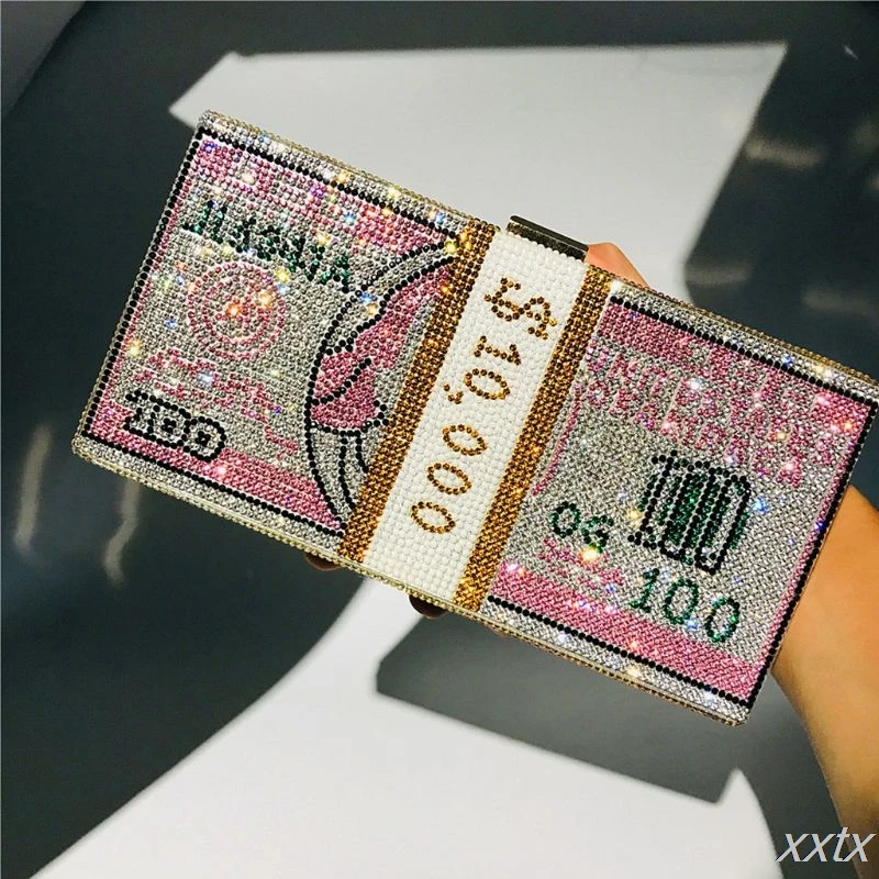 Клатч Стразы для денег, кошелек 10000 долларов, стопка наличных, вечерние сумочки, сумка на плечо для свадебного ужина, 8 цветов