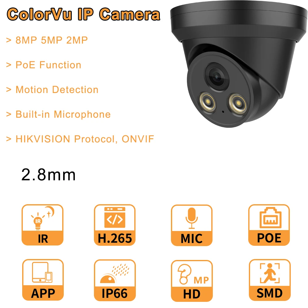 Полноцветная камера видеонаблюдения Hikvision, совместимая с Ultra HD, 8 Мп, H.265, IP66, объектив 2,8 мм, микрофон 5 МП, PoE, IP веб-камера наблюдения