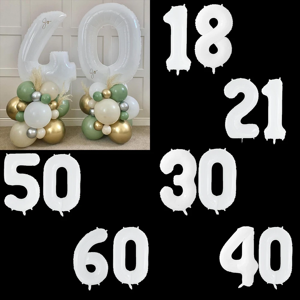 Шары воздушные белые, 32 дюйма, для дня рождения, 30, 40, 50, 60, 70, 80, 90, 2 шт.