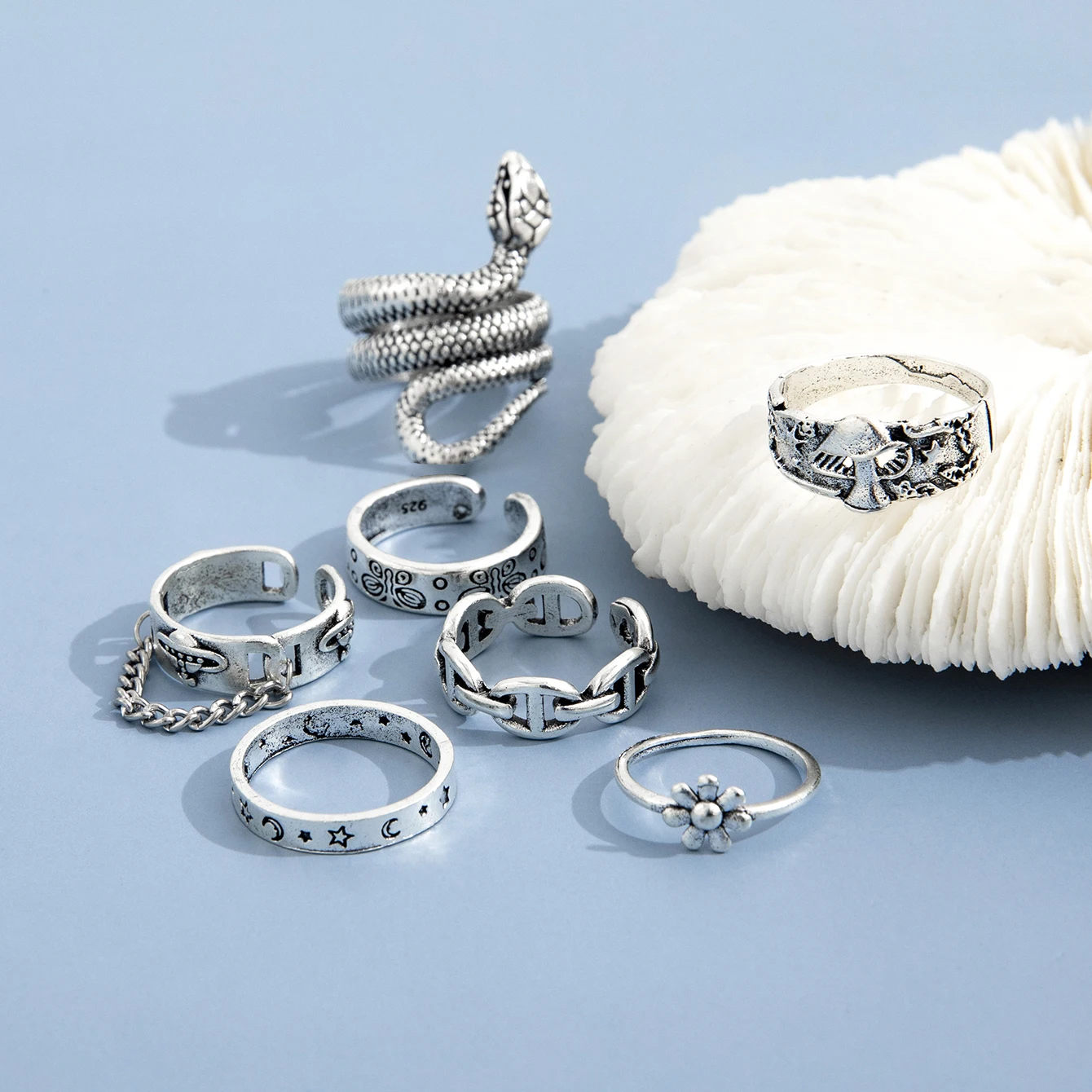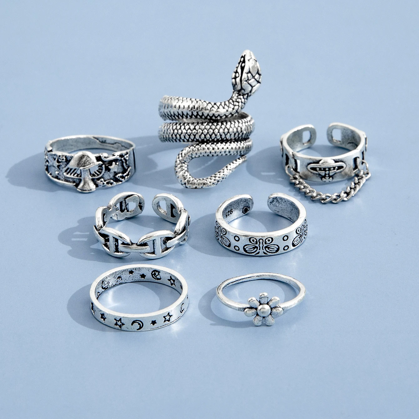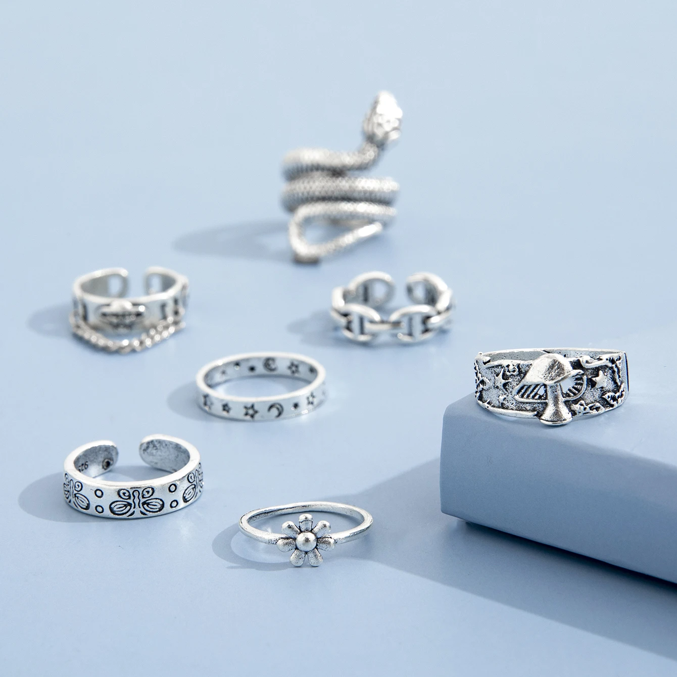 7 шт.компл. винтажные панковские кольца в виде змеи гриба бабочки д...