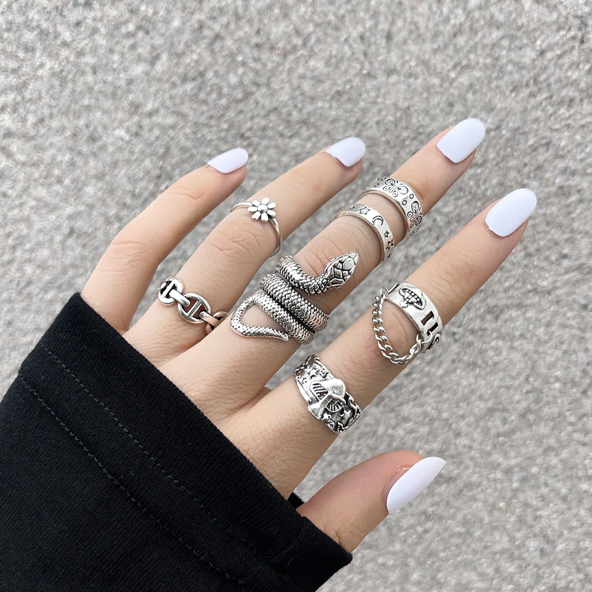 Набор женских колец в стиле панк и змеи Aprilwell, 7 шт., модные ювелирные украшения для пар в стиле K-POP с готической бабочкой, 2021