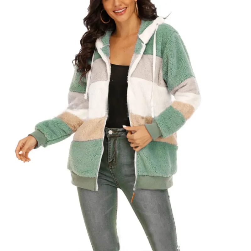 Женская куртка, модное лоскутное плюшевое пальто на молнии с капюшо...