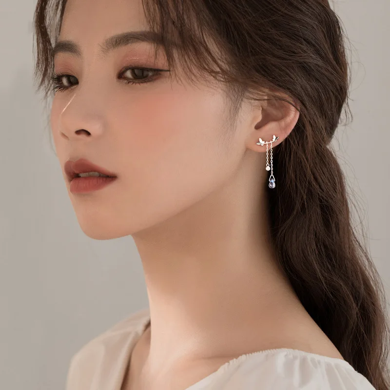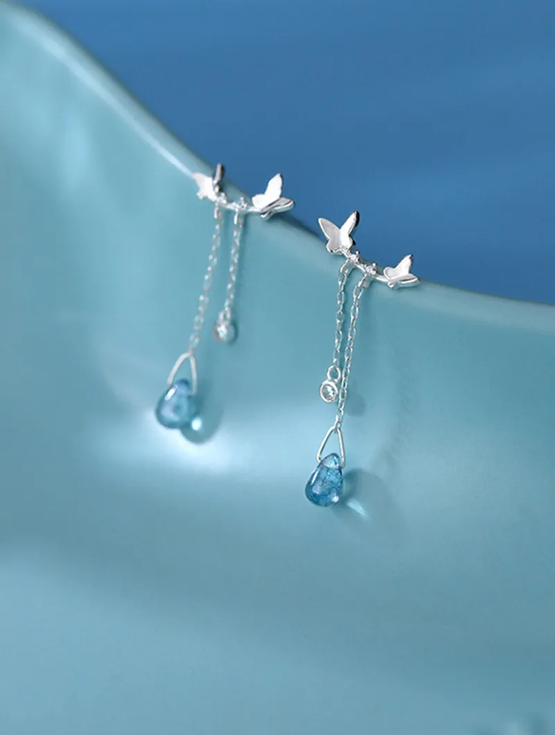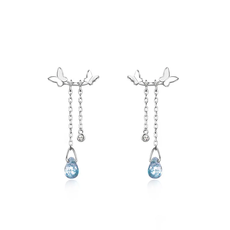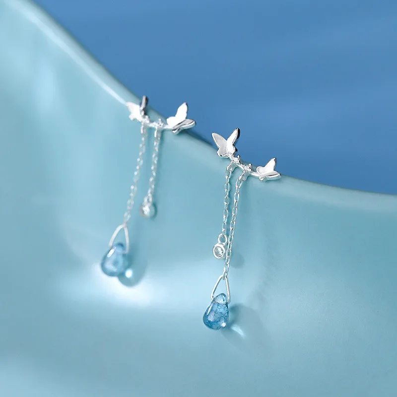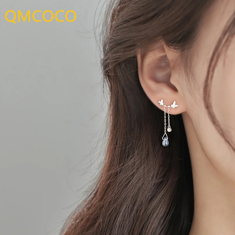 QMCOCO модные креативные серьги из серебра 925 пробы в виде бабочки, голубой цвет, простые классические украшения для женщин, аксессуары вечерние