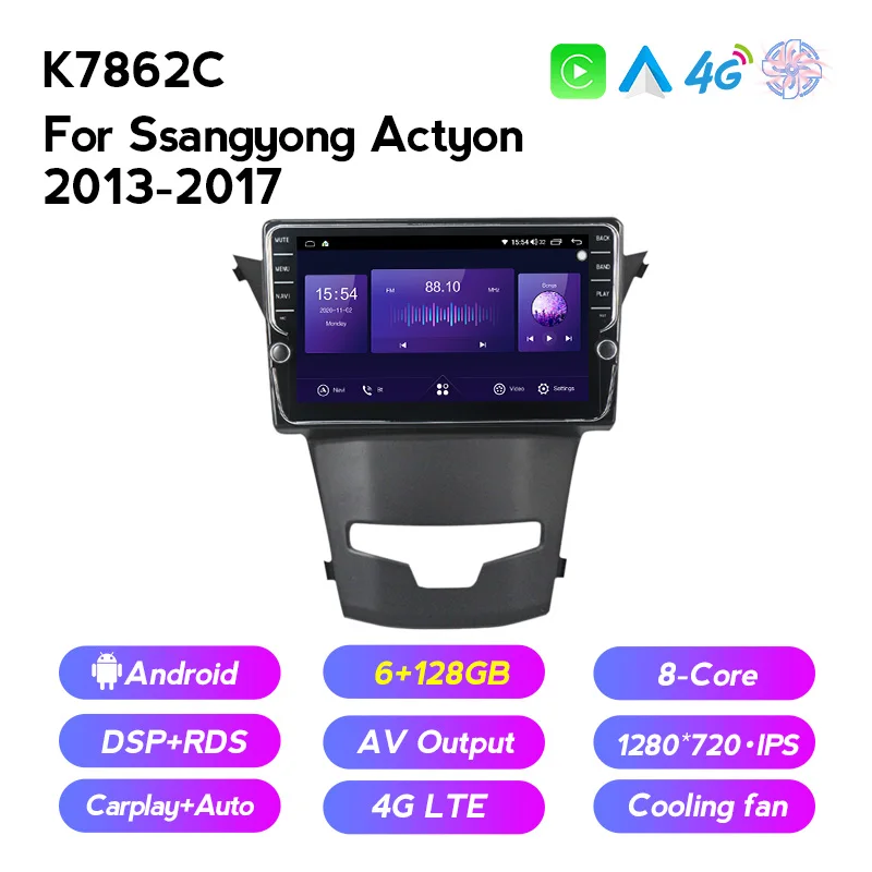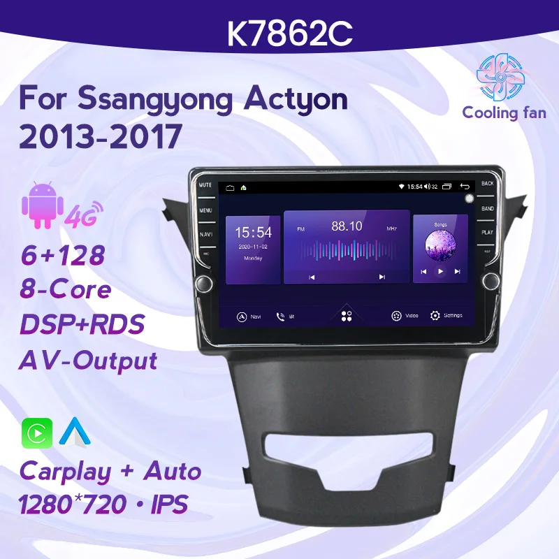 6 + 128G Carplay Авто Android 11 IPS автомобильное радио для Ssangyong Korando 3 Actyon 2 2013-2017 Мультимедиа GPS навигация плеер BT DSP