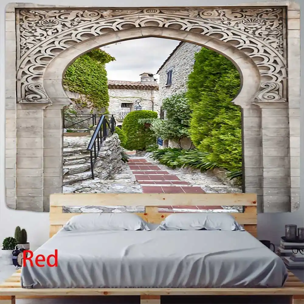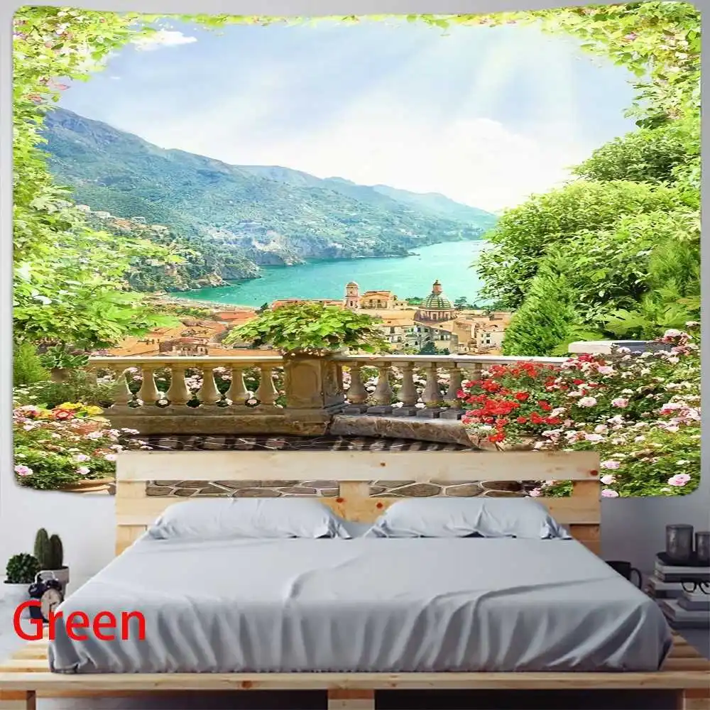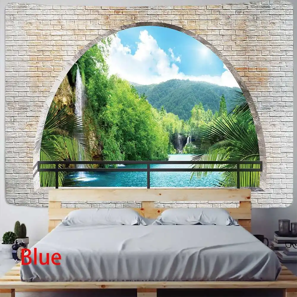 Настенный декоративный гобелен с 3d-изображением пейзажа, Скандинавская арка на окне, занавеска, одеяло для пикника