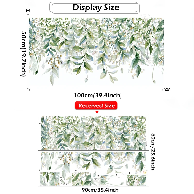 Акварельные зеленые растения, зеленые листья, настенные наклейки для гостиной, спальни, декоративные съемные наклейки, фрески