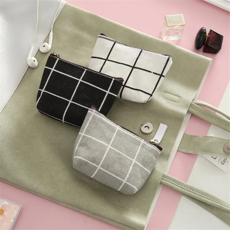 Холщовая ткань решетки Кошельки для монет Мини кошельки Держатель к...