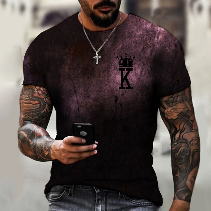 Летняя мужская футболка с 3D принтом покера K, модная одежда в евро...