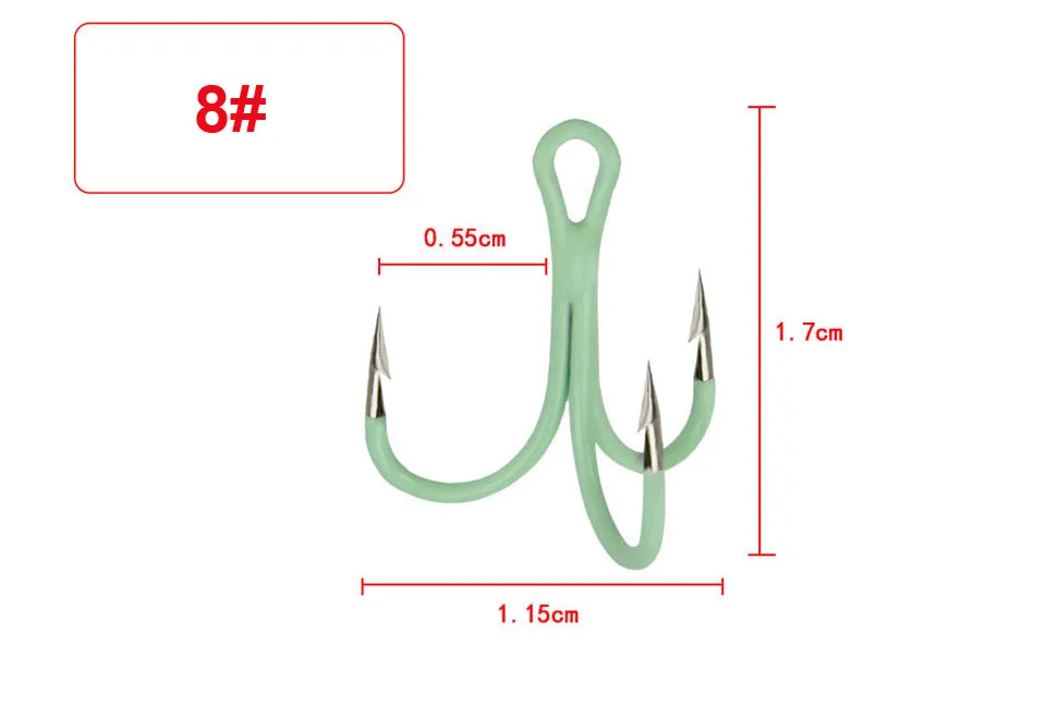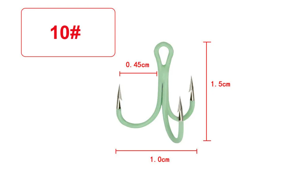 Тройной рыболовный крючок из высокоуглеродистой стали, 10 шт.лот, светящиеся тройные Крючки, аксессуары для морских снастей