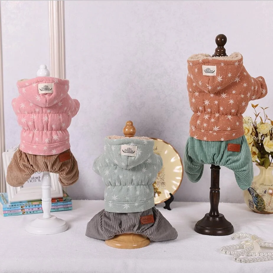 Зимние комбинезоны для собак со звездами, вельветовый флисовый комб...
