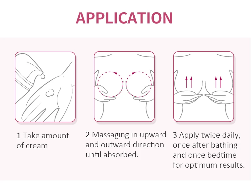 1. Возьмите количество крема 2. Массируйте вверх и наружу до впитывания. 3. Наносите два раза в день, один раз после купания и один раз перед сном для достижения оптимальных результатов.