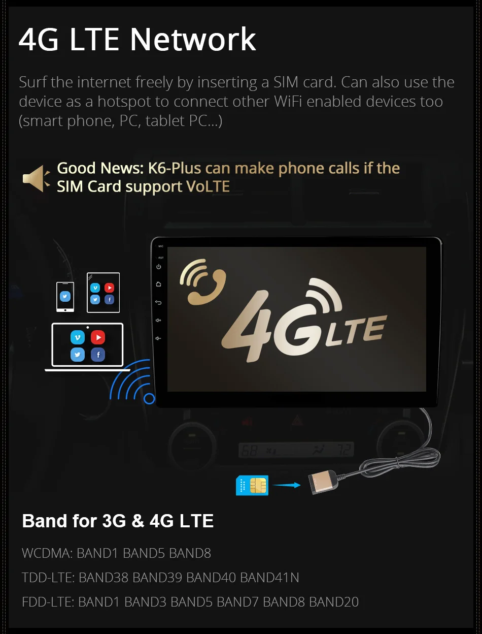 Support 4G LTE , Built-in WIFI
