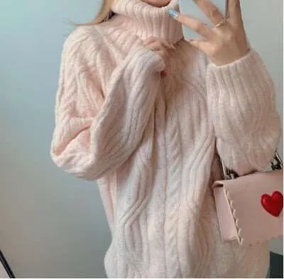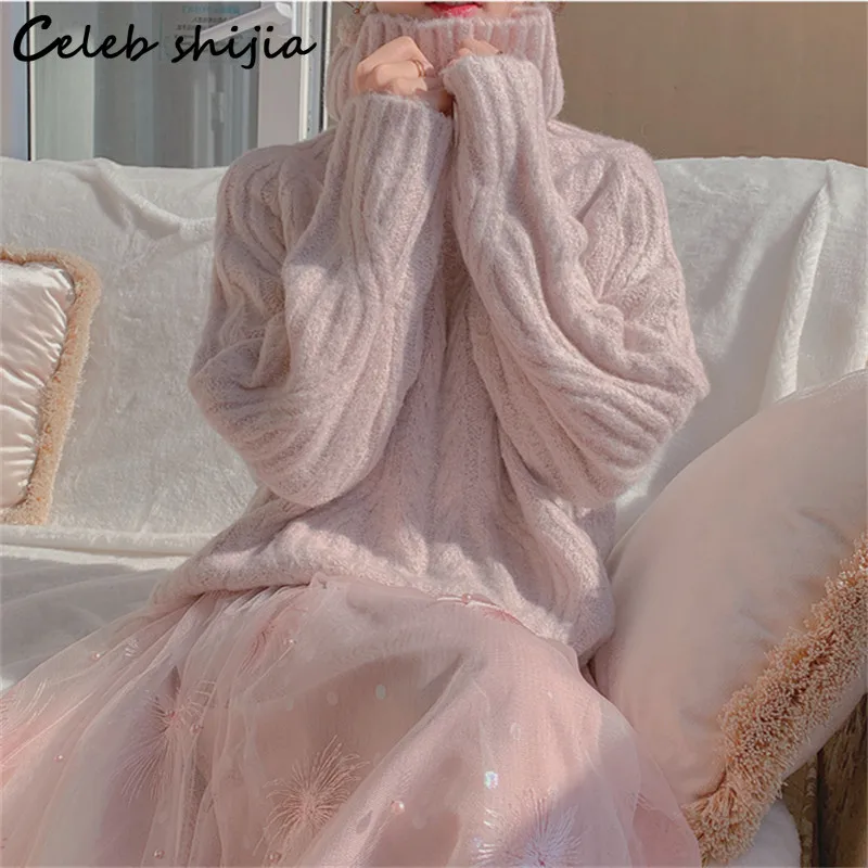 Женский свободный свитер-водолазка SHIJIA, зеленые шикарные вязаные...