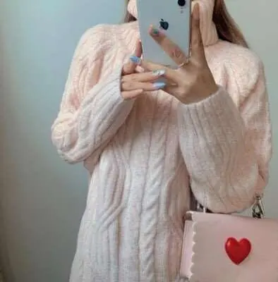 Длинный свитер SHIJIA абрикосового цвета, женская одежда в уличном ...