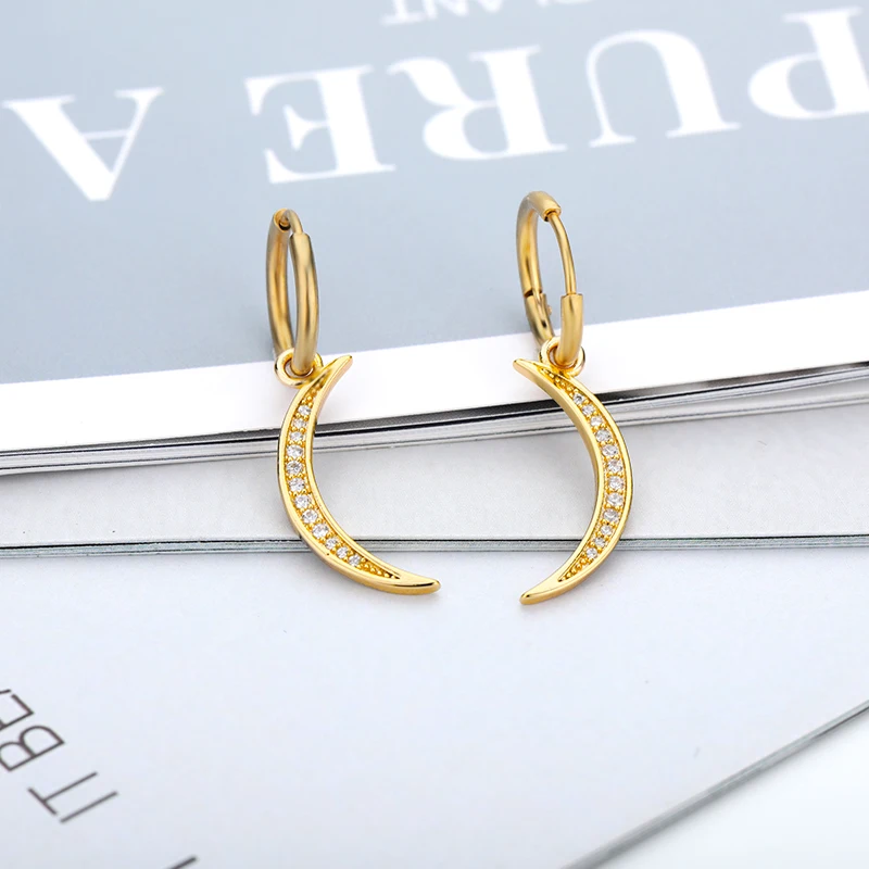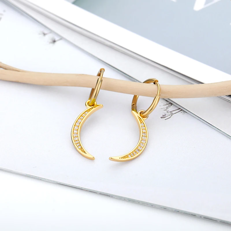 Женские серьги-кольца в виде полумесяца, золотого и серебряного цвета с цирконом