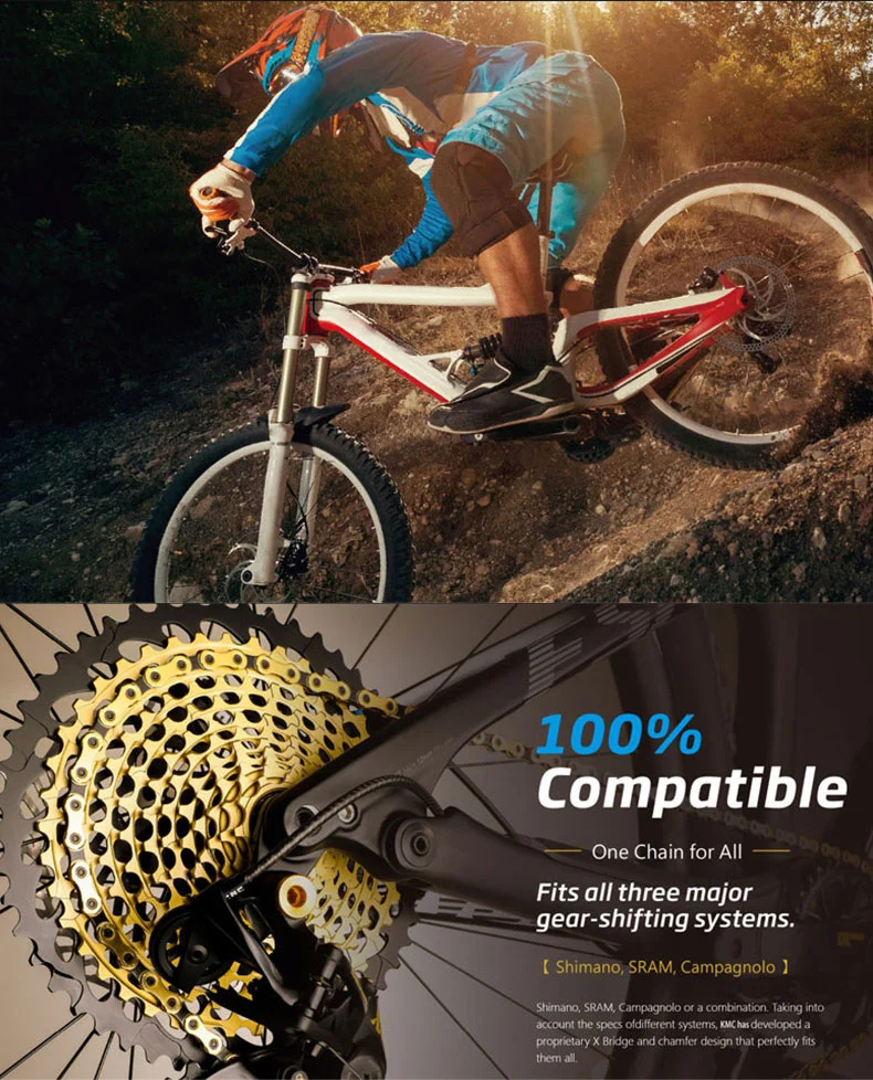 KMC 11v цепь для дорожного велосипеда 11 цепь для скоростного велосипеда X9 X10 X11 118L звенья совместимы с SHIMANO 11 скоростная цепь с замком