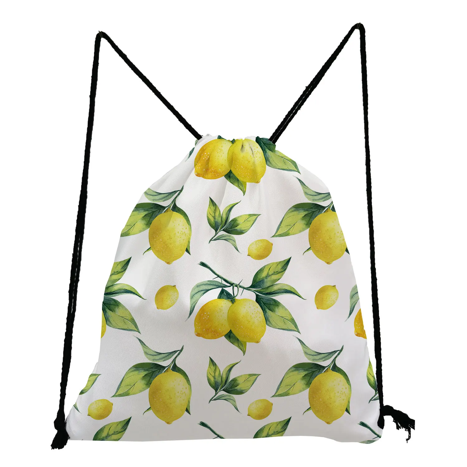Рюкзак на шнурке с принтом лимона, повседневная школьная сумка унисекс для обуви, портативный ранец с принтом растений и фруктов, с узором под заказ