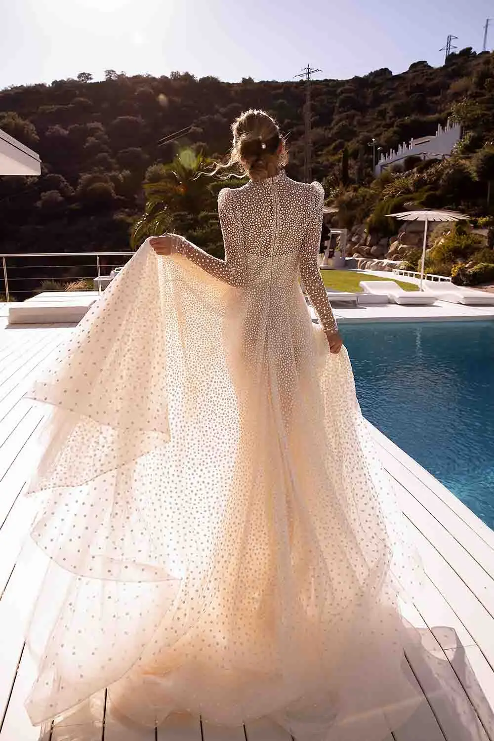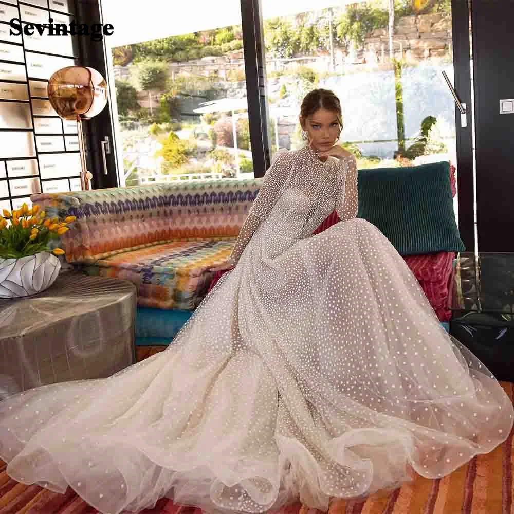 Sevintage блестящее Тюлевое платье в горошек с длинными рукавами в стиле бохо свадебное платье с высоким воротником 2021 Свадебные платья принцессы невесты