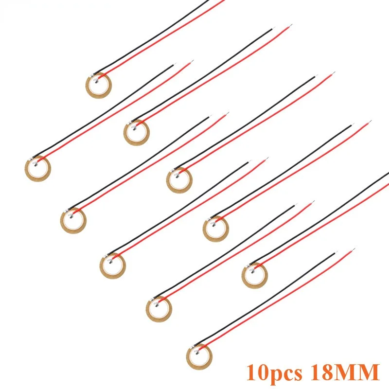 10 шт. 18 мм пьезоэлектрическая пьезокерамическая пластина Dia для зуммера, датчик громкоговорителя с проводом