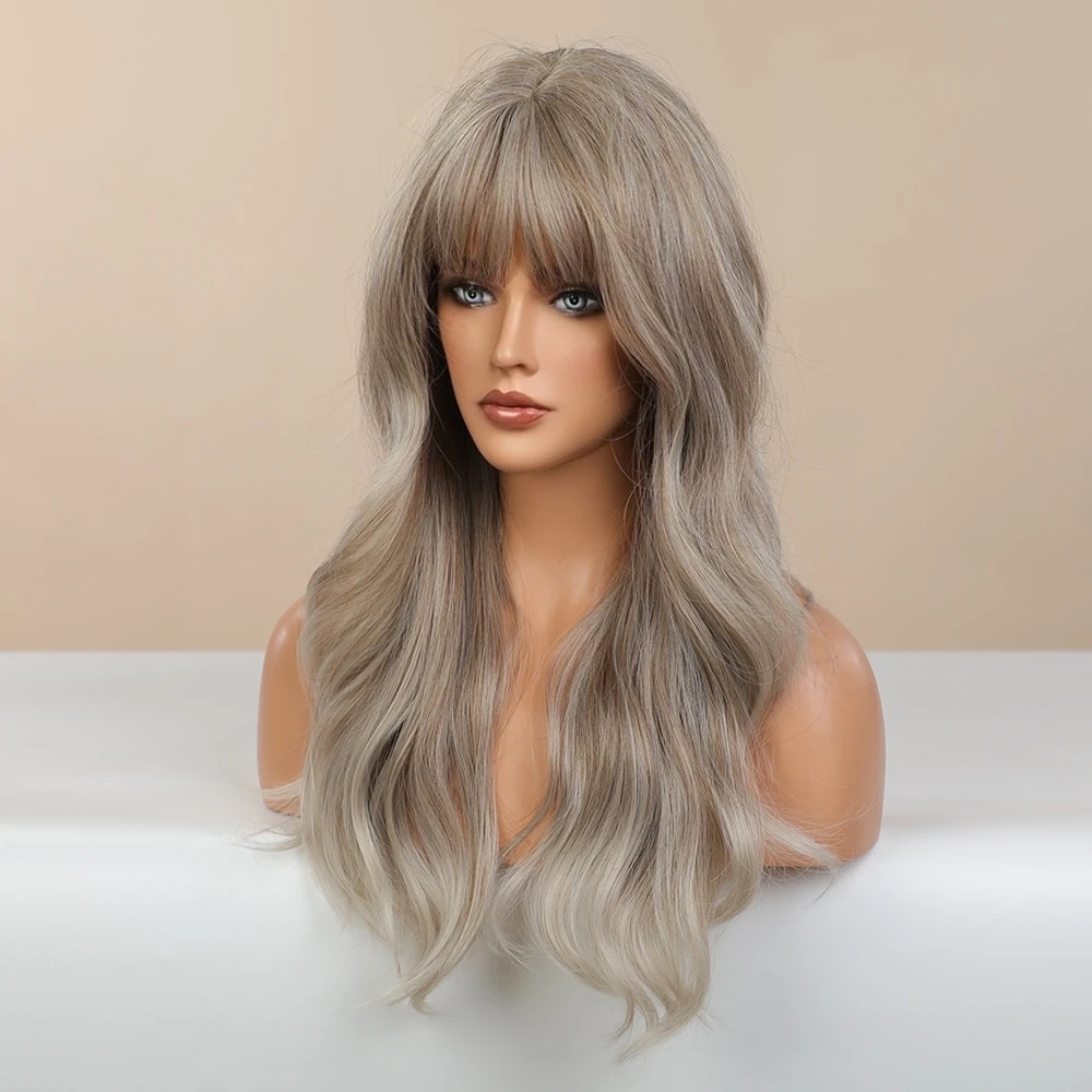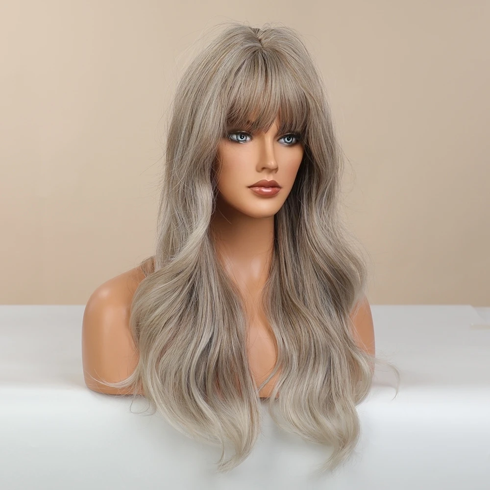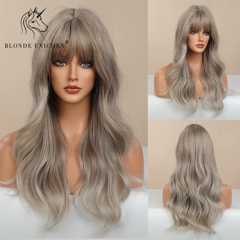Светлый Единорог длинные волнистые синтетические волосы парики Омбре светильник-серый светлый для женщин натуральный парик с челкой термостойкие волосы