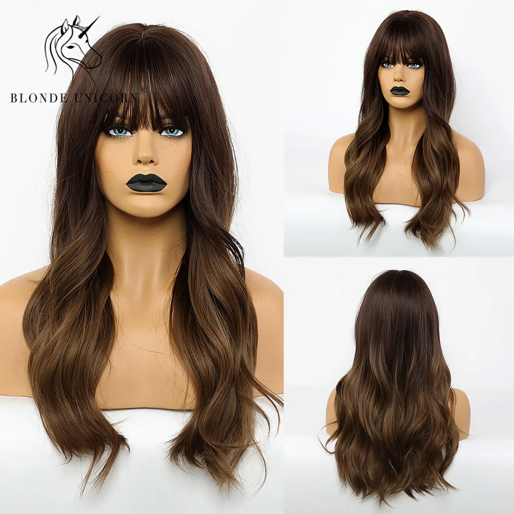Парик из синтетических темно-каштановых волос Блонд Единорог длинны...