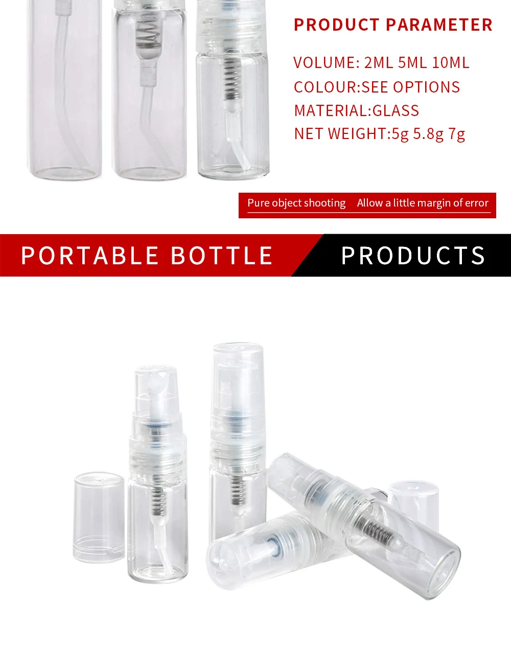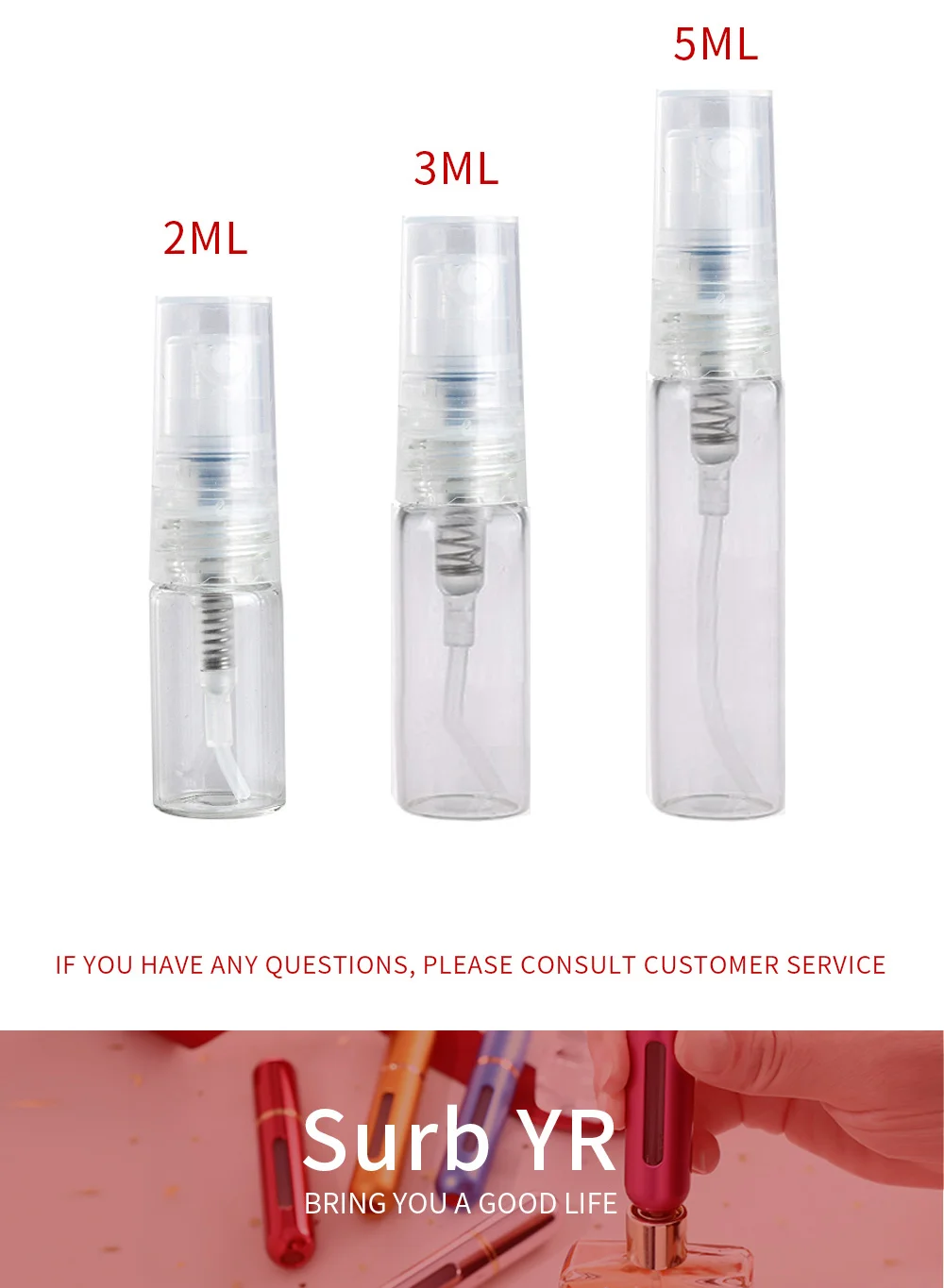 Оптовая продажа 2 3 5 мл портативный прозрачный стеклянный флакон для духов с распылителем и фонариком для путешествий с бесплатным пользовательским логотипом