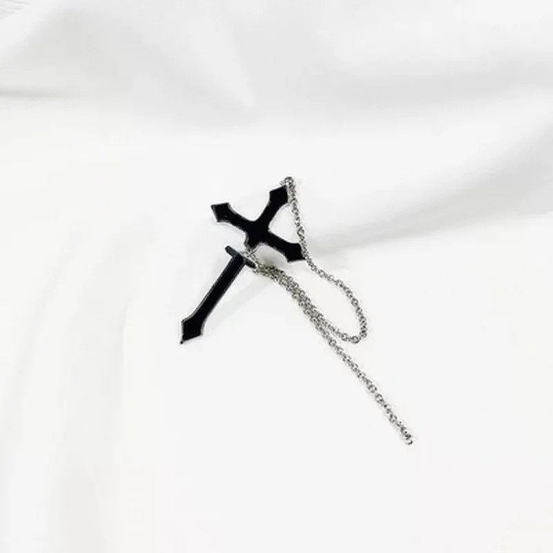 Модные висячие серьги в стиле панк с черным крестом для подростков, Винтажные серьги в стиле рок-гордости, Длинная цепочка, манжеты-бабочки, женские серьги, ювелирные изделия для девочек