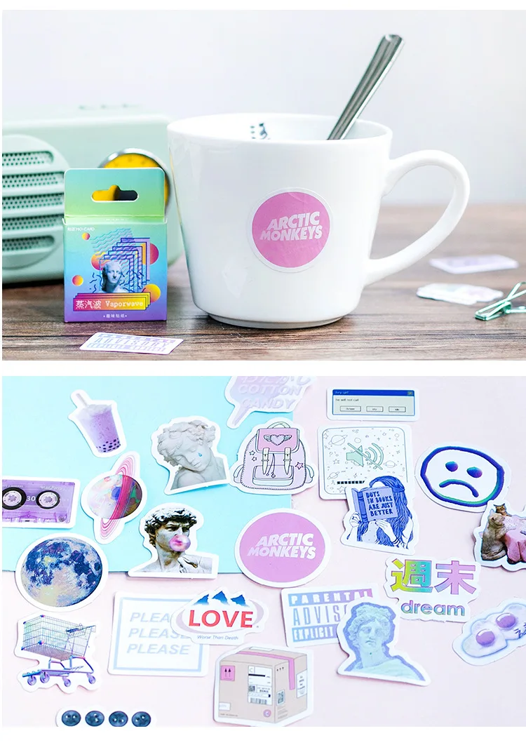 Симпатичные этикетки Vaporwave милый дневник ручной работы, клейкие...