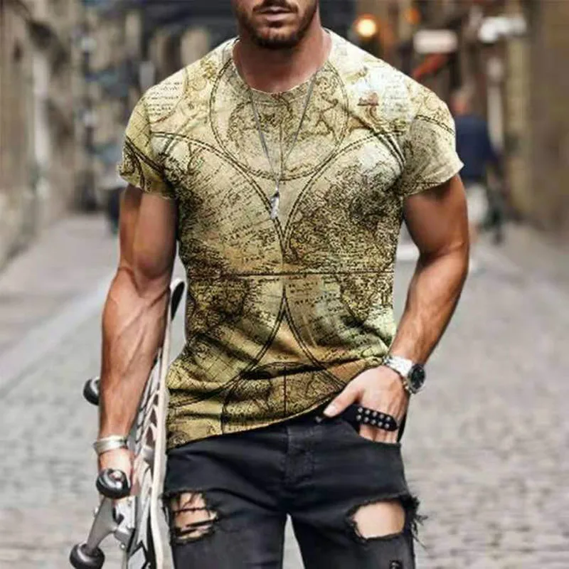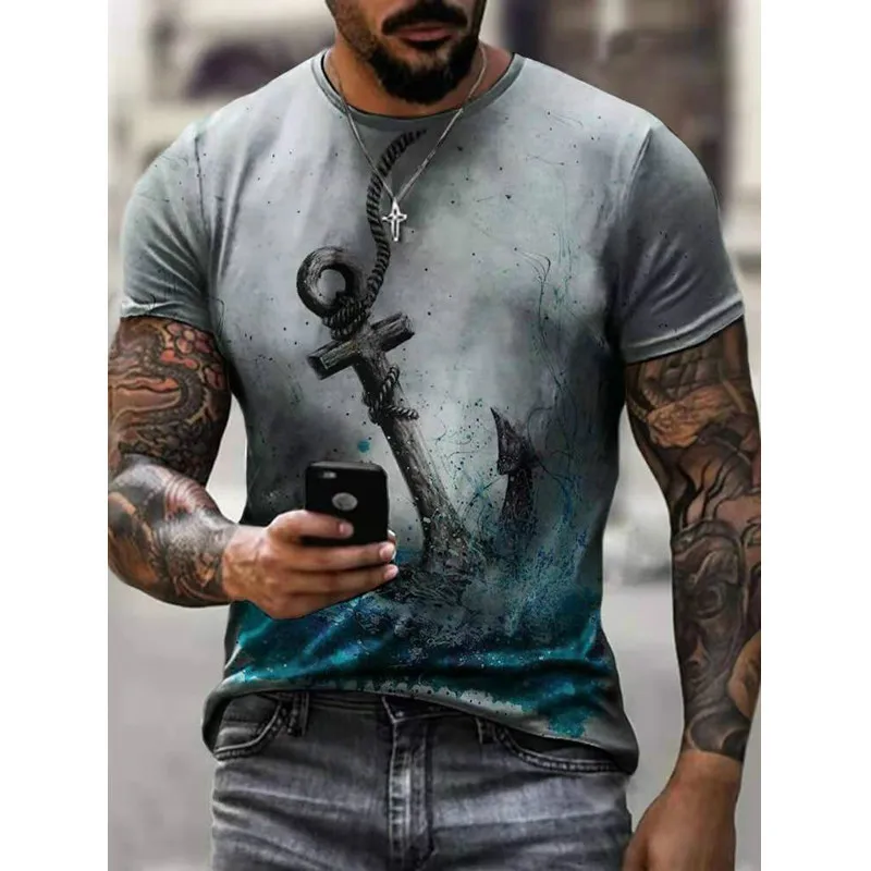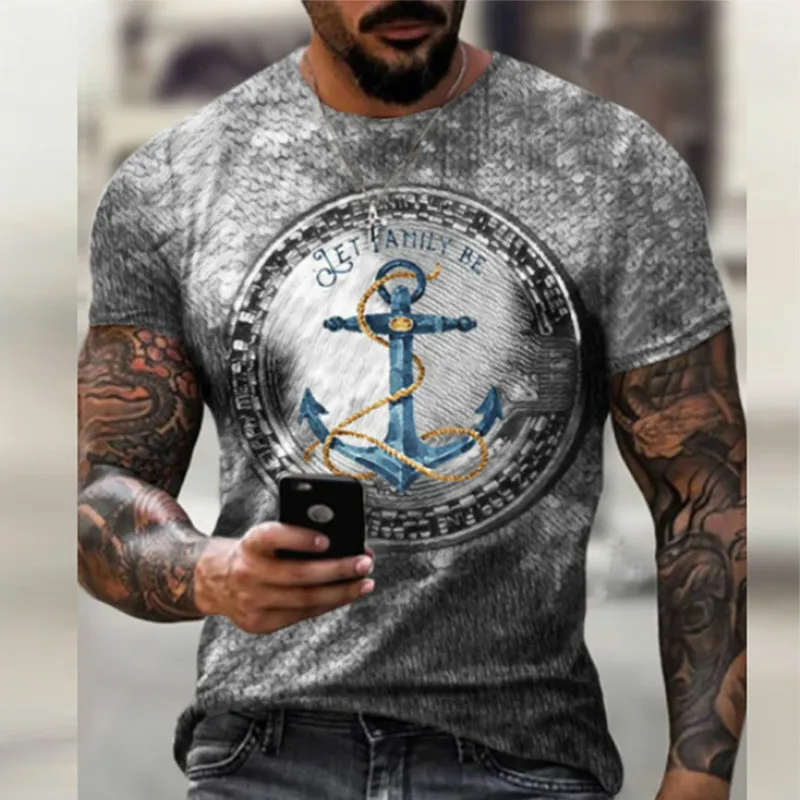 Летняя мужская футболка в европейском и американском стиле с морским компасом, Женская 3D одежда, Мужской Свободный Топ большого размера с круглым вырезом