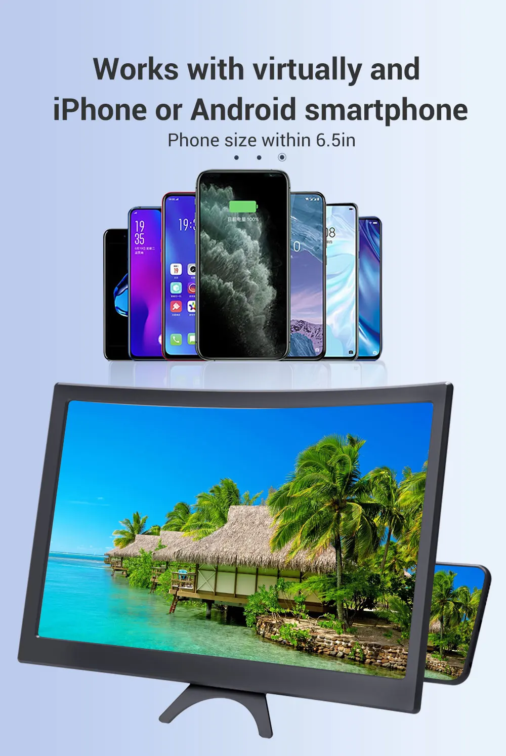 [Удобный просмотр] Лупа экрана работает так же, как экран проектора телефона, эффективно удваивая размер вашего экрана, чтобы вы могли наслаждаться фильмами и видео на вашем смартфоне в полной мере в HD.