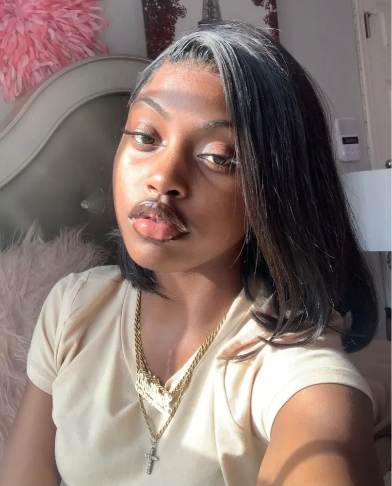 Детские волосы вокруг, средняя часть, отбеленные узлы, бесклеевой парик. Предварительно выщипывается с естественной линией волос, не запутывается