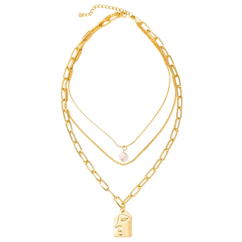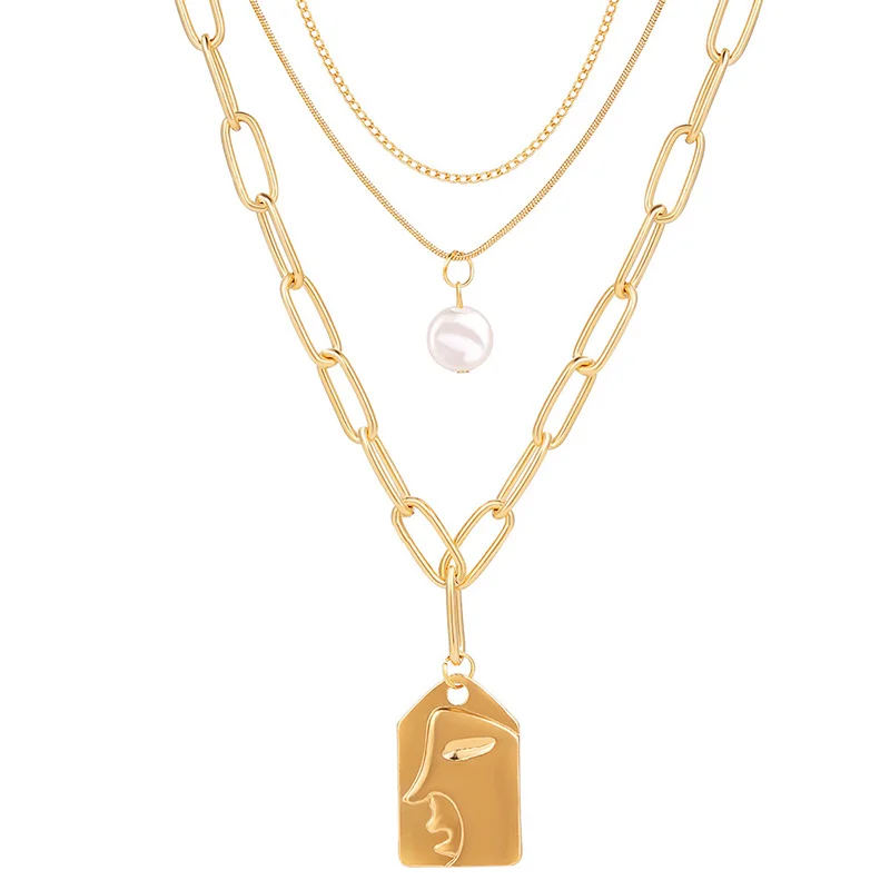Женское многослойное ожерелье в стиле панк с искусственным жемчугом