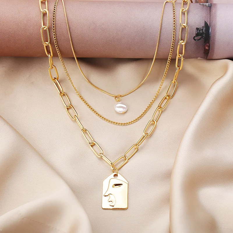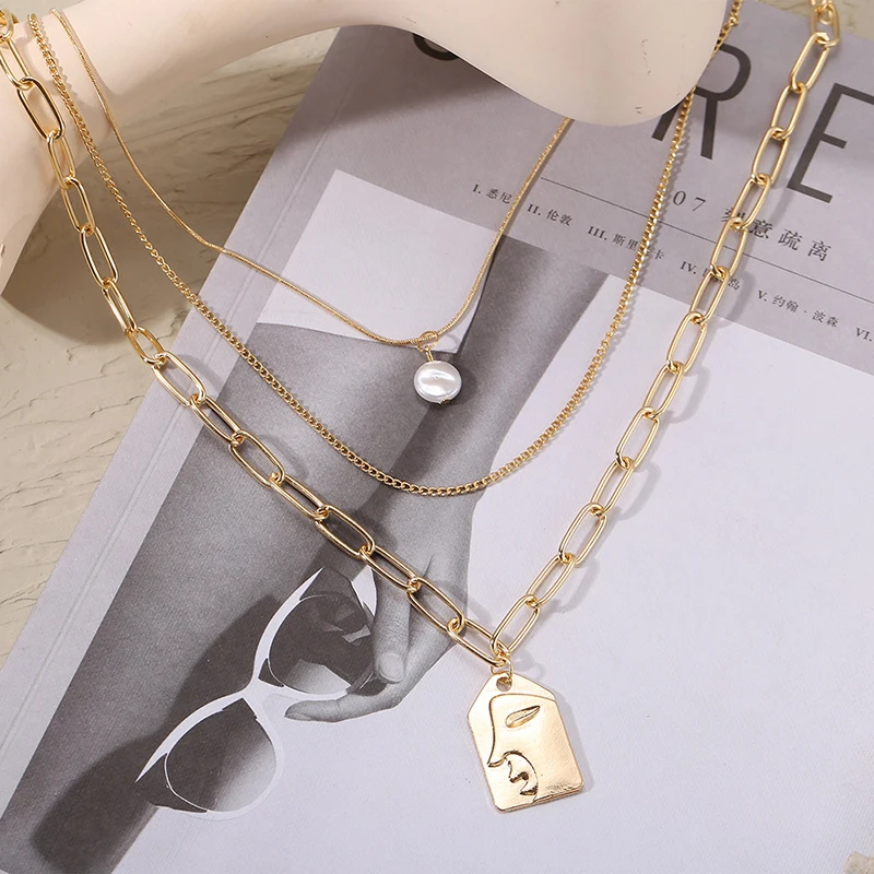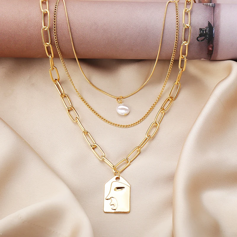 Женское многослойное ожерелье с абстрактным кулоном, винтажное эсте...