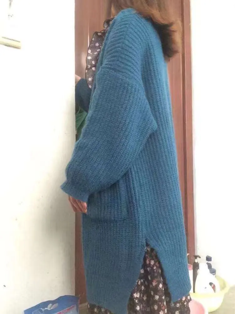 Кардиган женский шерстяной, длинный вязаный, оверсайз, в Корейском ...