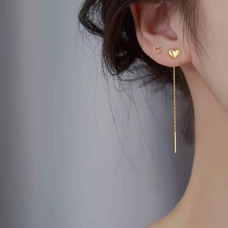 Длинные висячие серьги с кисточками в форме сердца, золотого и серебряного цвета, 2021, корейские Висячие женские серьги, Модная бижутерия для вечеринки, подарок для девочек
