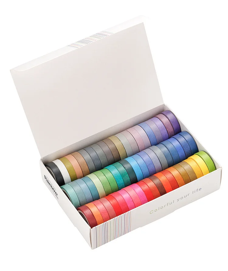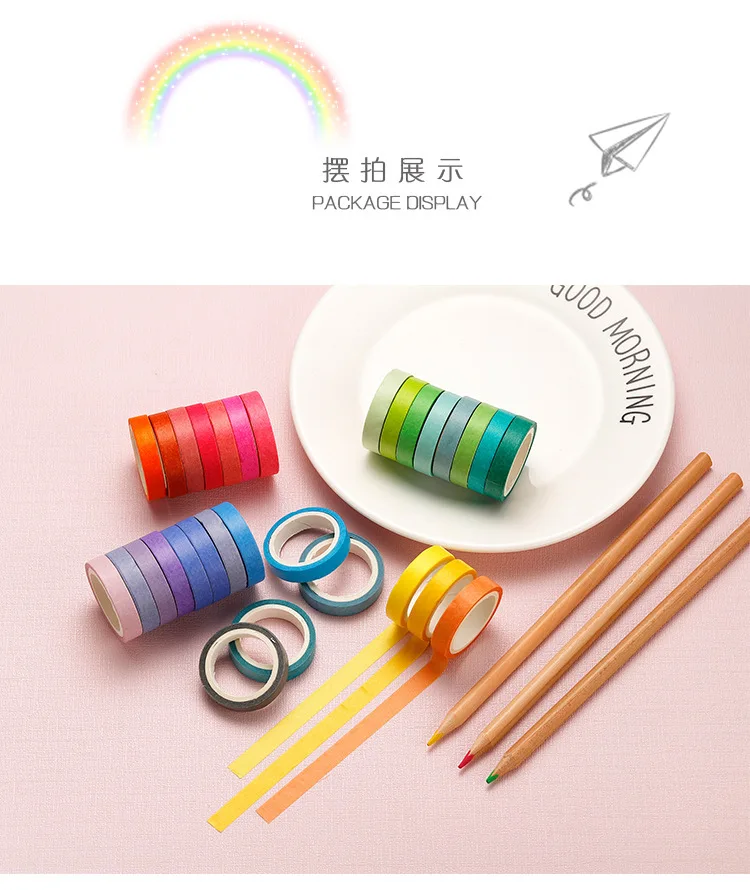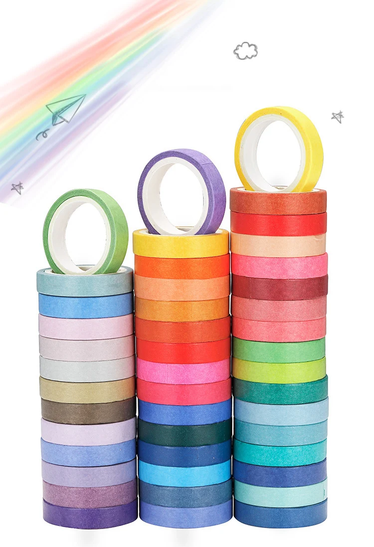 60 шт.компл. Базовая однотонная Васи-лента, радужная Маскировочная лента, декоративная клейкая лента, стикеры, канцелярские принадлежности