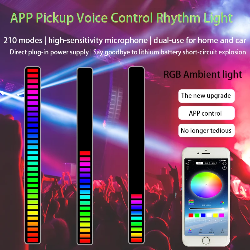 RGB акустический пикап ритм-лампа управление через приложение ослепляющий цвет музыка атмосферсветильник свет USB автомобиль Настольный светодиодный пикап