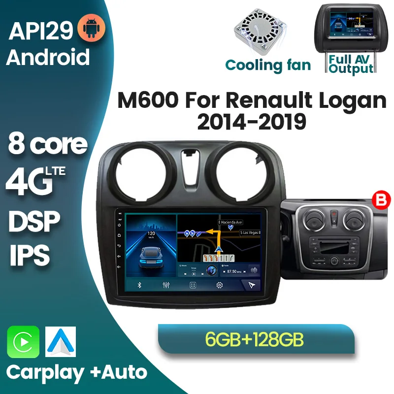 Автомагнитола DSP Android 10 4G LTE, мультимедийный проигрыватель с GPS навигацией для Renault Logan 2 2012 - 2019 Sandero 2 2014-2019, аудиоблок BT