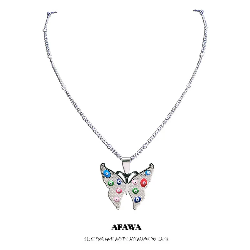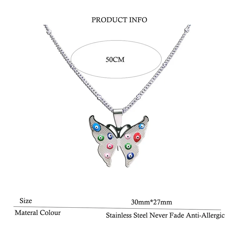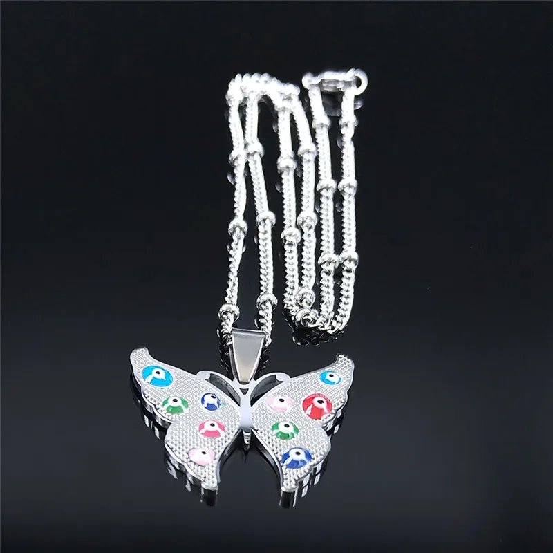 Ожерелье из нержавеющей стали с яркими турецкими глазами и бабочкой, Женское Ожерелье серебряного цвета, Ювелирное Украшение ojo turco N5223S04