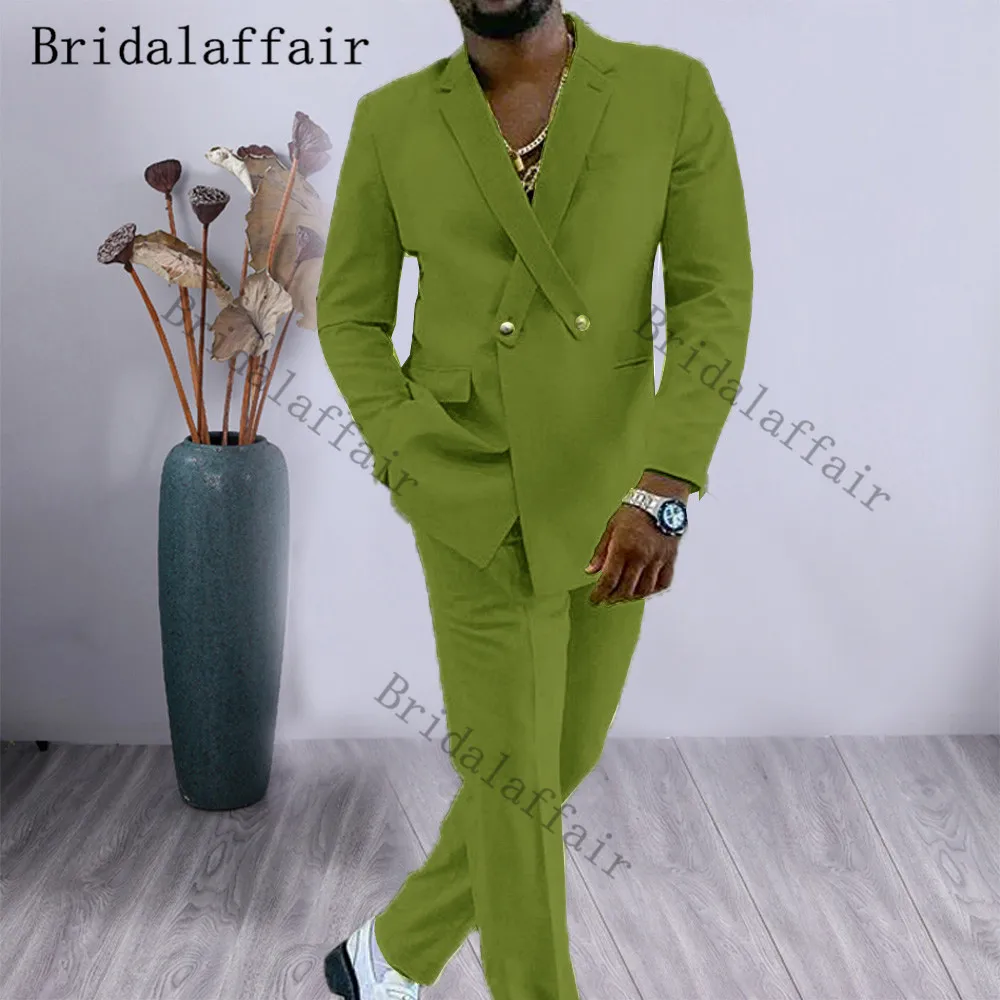 Костюм-двойка мужской из жакета и штанов, с перекрестными лацканами