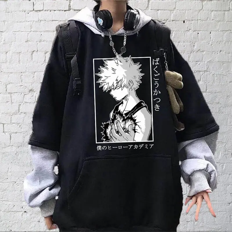 Толстовка с капюшоном в стиле аниме Харадзюку с надписью Мой герой Академия, Свитшот унисекс с принтом, пуловер, свободные повседневные топы, толстовка