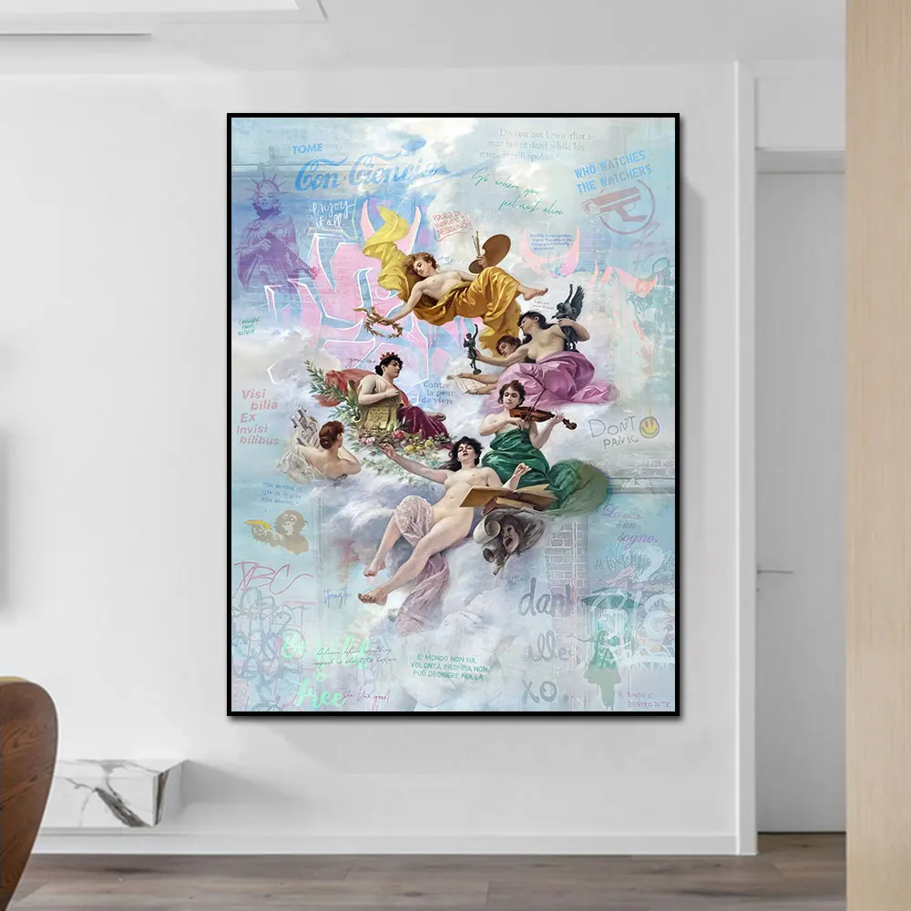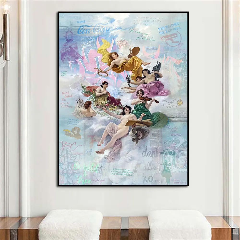 Картина на холсте с ангелами и демонами, абстрактные плакаты и прин...