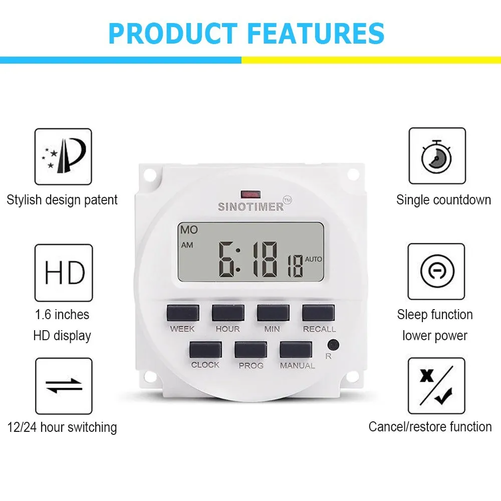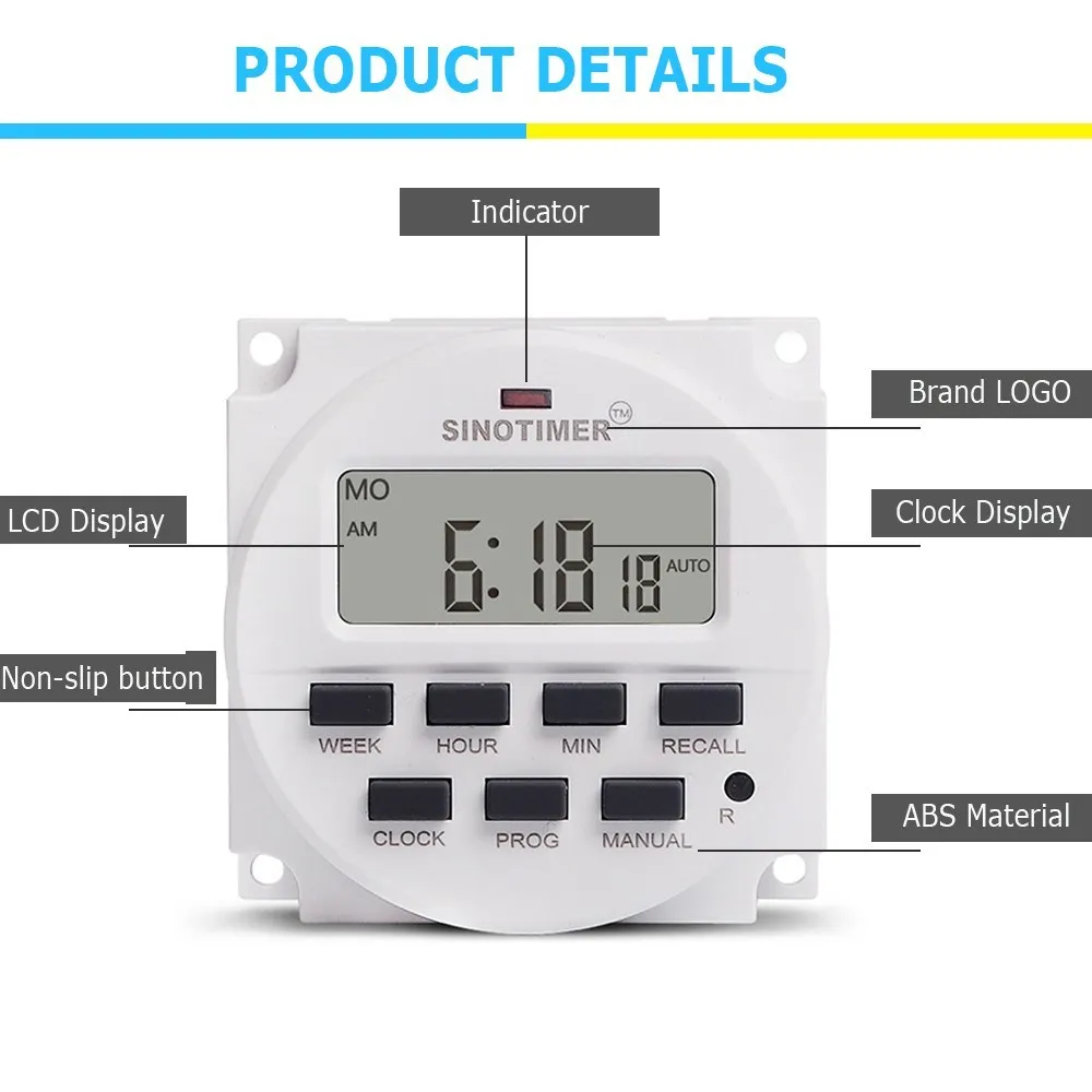 Программируемый таймер с ЖК-дисплеем, 1,6 дюйма, 12 В постоянного токапеременного тока, 7 дней