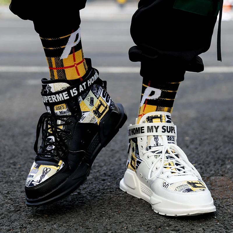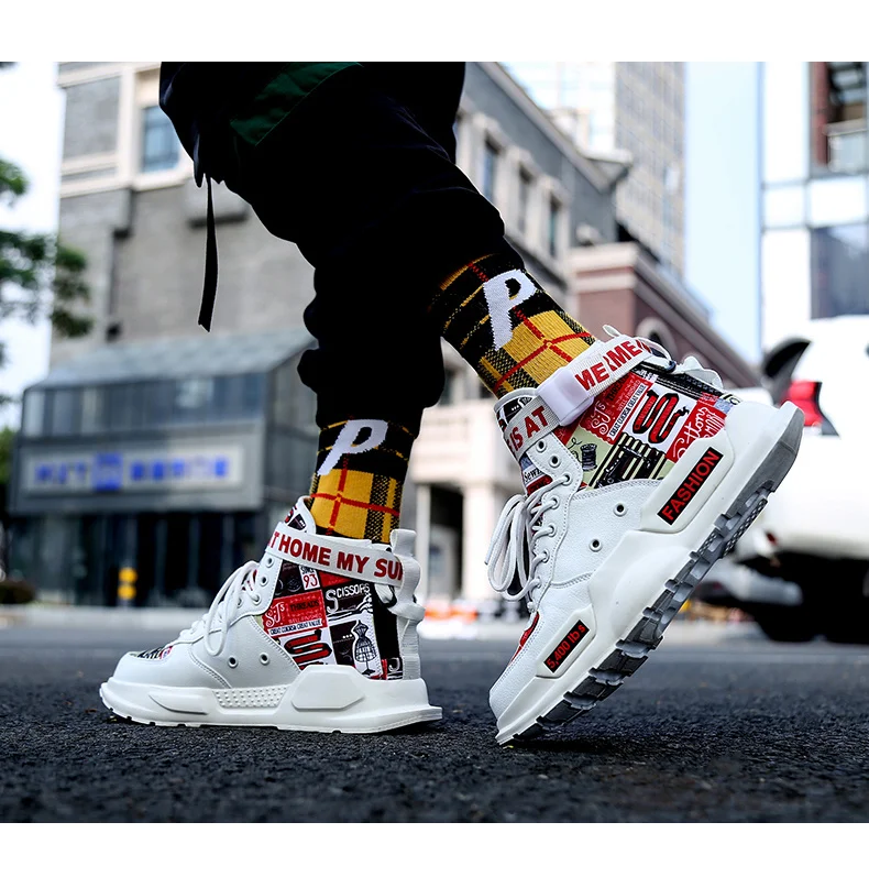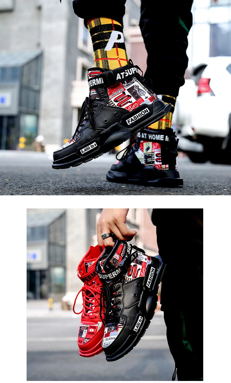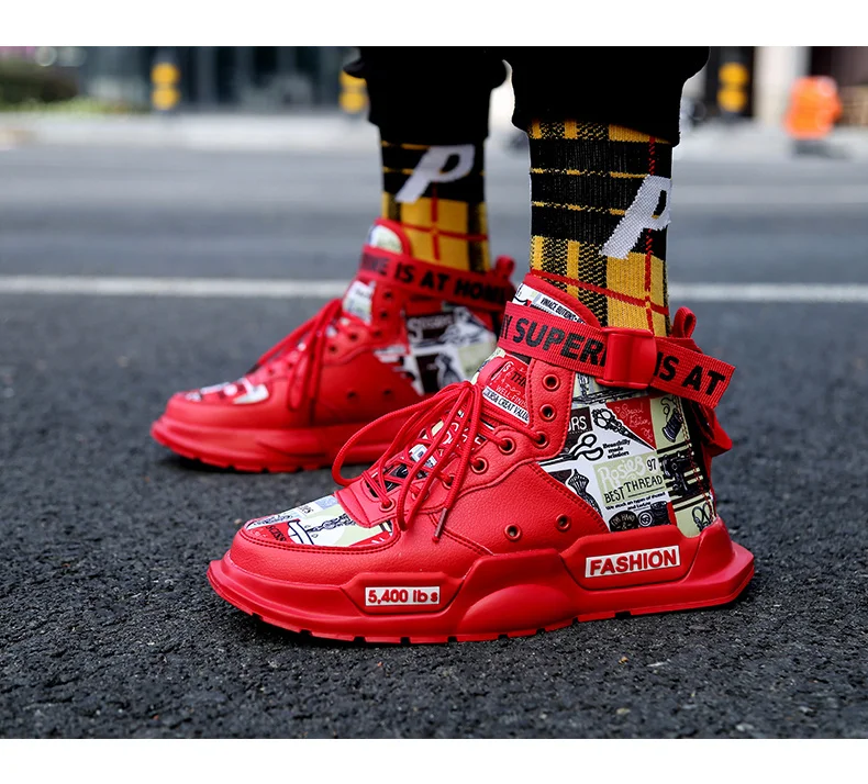 Кроссовки мужские высокие, высокие кеды, на платформе, красная подошва, Классическая утка, Тренд Осень 2021