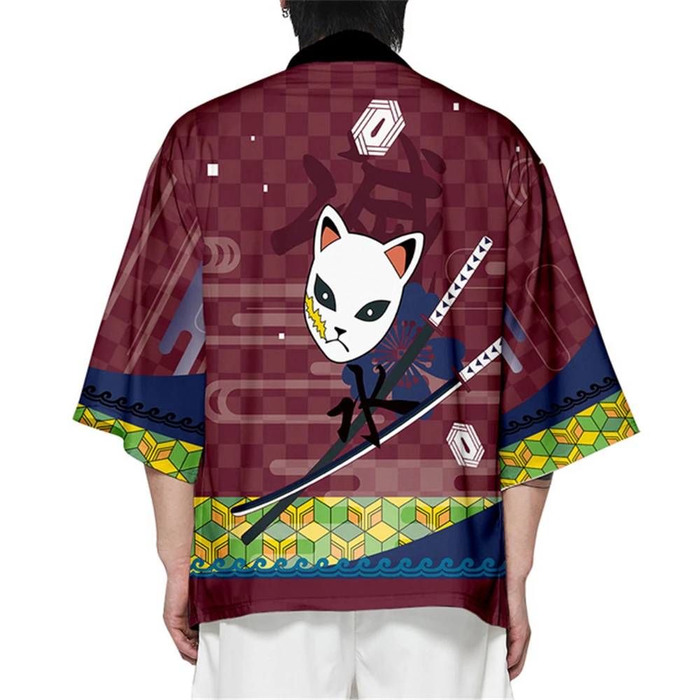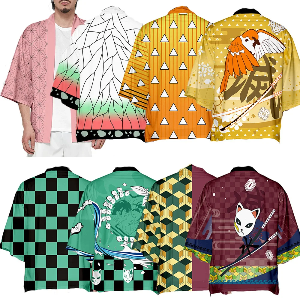 Аниме Demon Slayer Kimetsu no Yaiba кимоно мужской косплей костюм 3D печать японское кимоно хаори юката камадо танджиро незуко