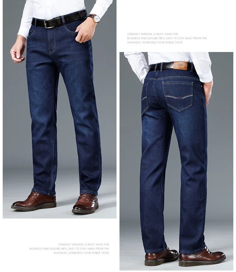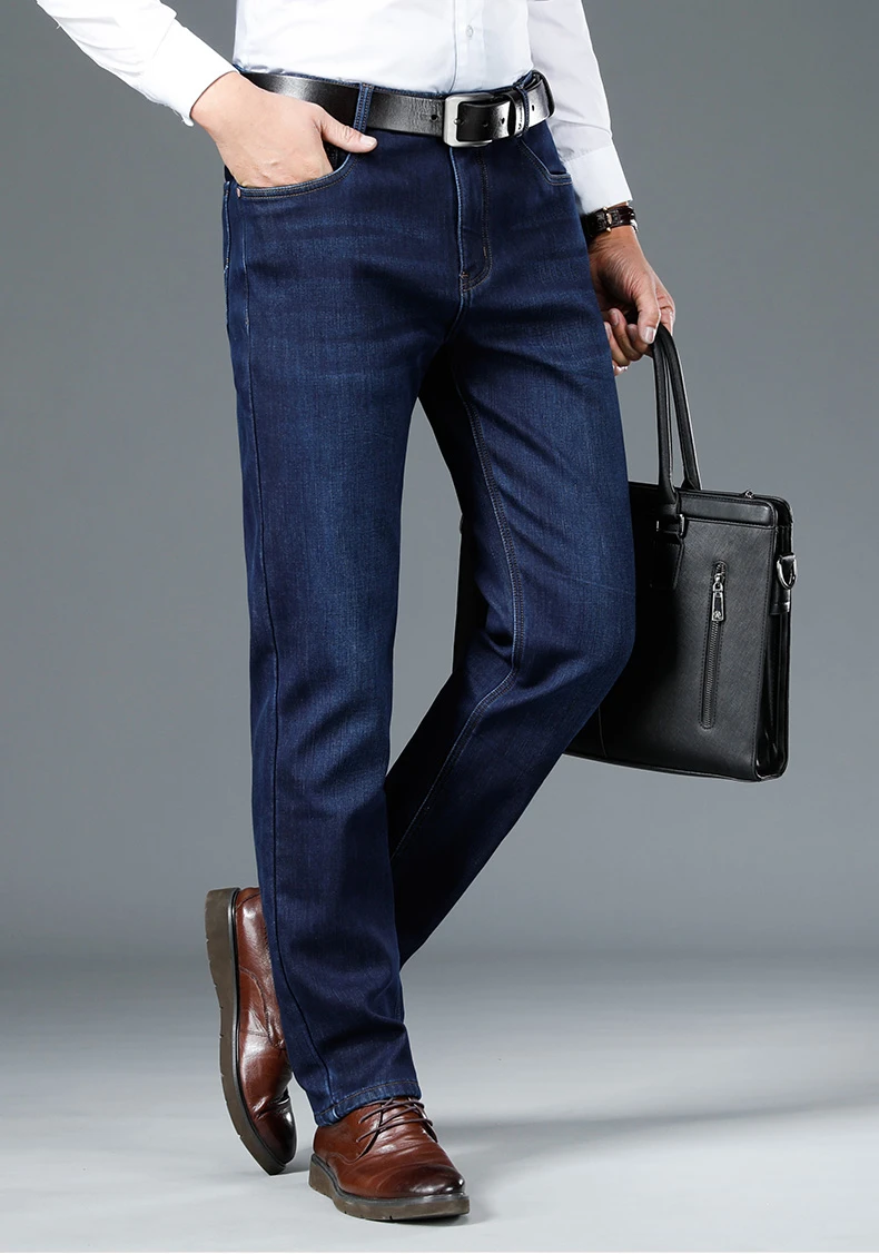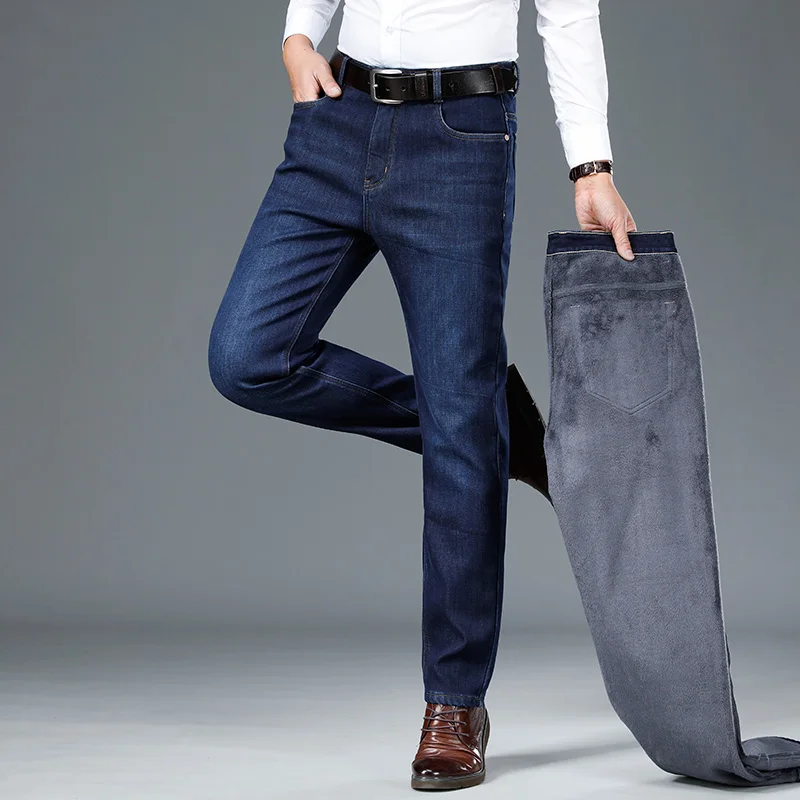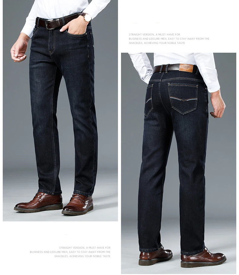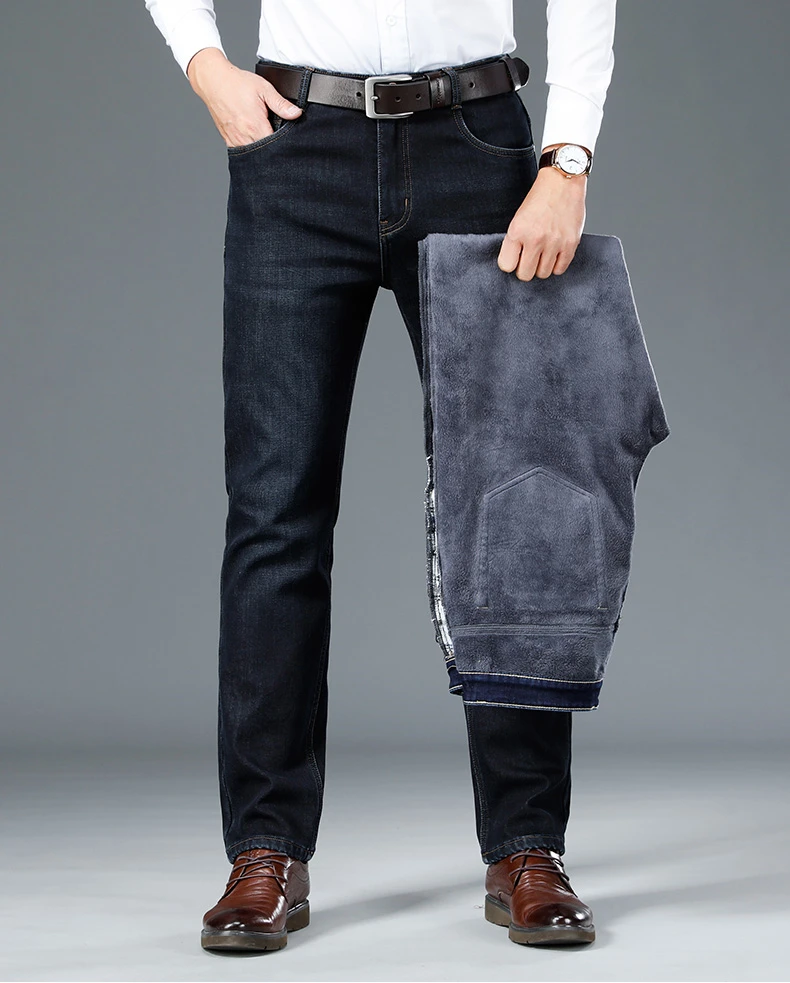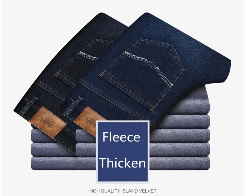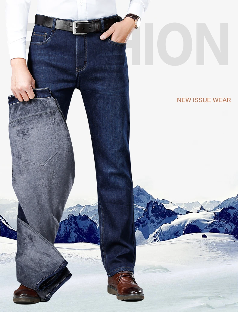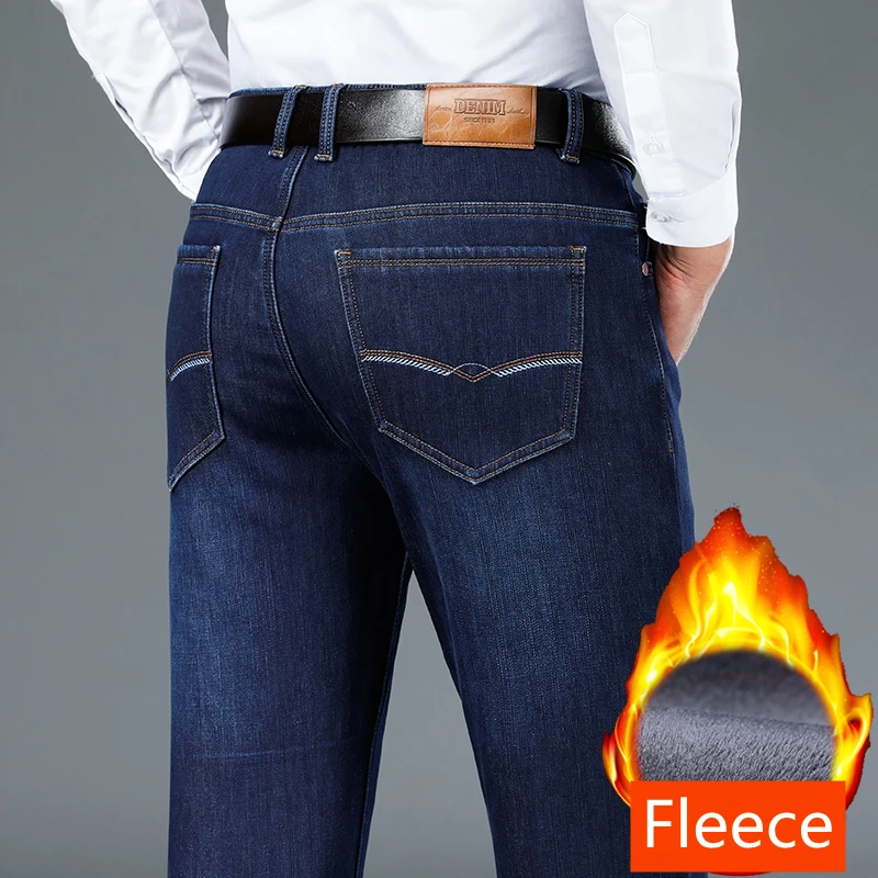 Джинсы мужские с флисовой подкладкой, классические брендовые деловые прямые Стрейчевые мягкие брюки из денима, бархатные плотные теплые облегающие штаны, зима