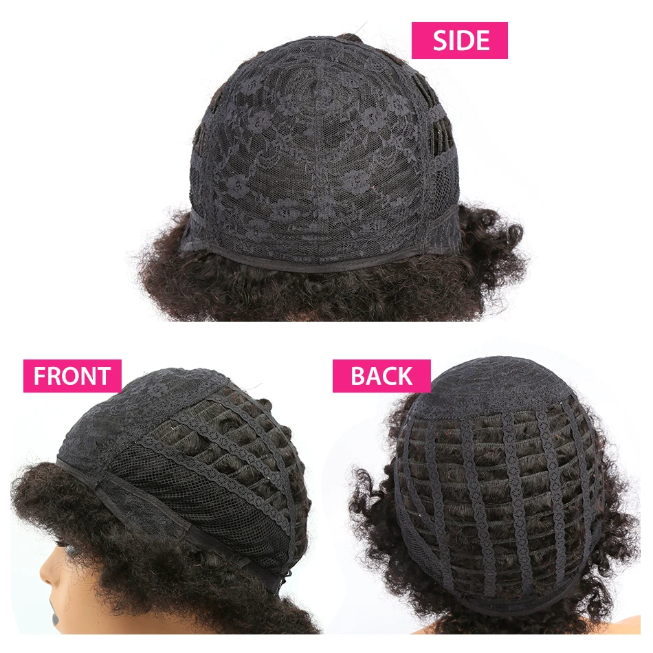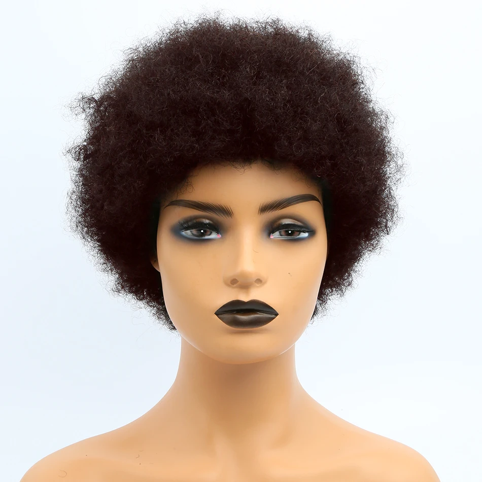 Короткие афро волнистые вьющиеся парики Melodie машинной работы с челкой Бразильские человеческие волосы без повреждений черный коричневый цвет парик для черных женщин