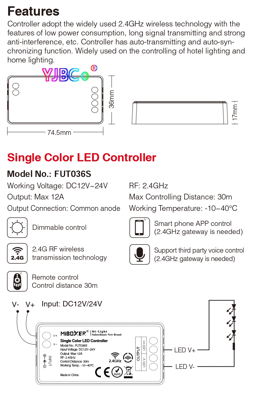 FUT036S2.4GHz Single Color LED Controller