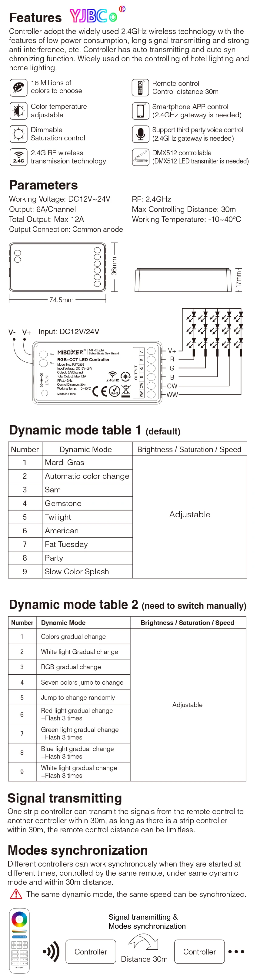 Название продукта: 2,4 GHz RGB + CCT светодиодный контроллер