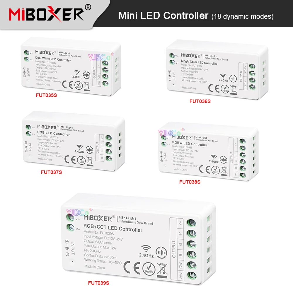 Мини-контроллер Miboxer для светодиодных лент, 2,4 г, 12 В, 24 В постоянного тока, 12 А, одноцветная, цветовая температура, RGB, RGBW, RGB, CCT светильник световой диммер